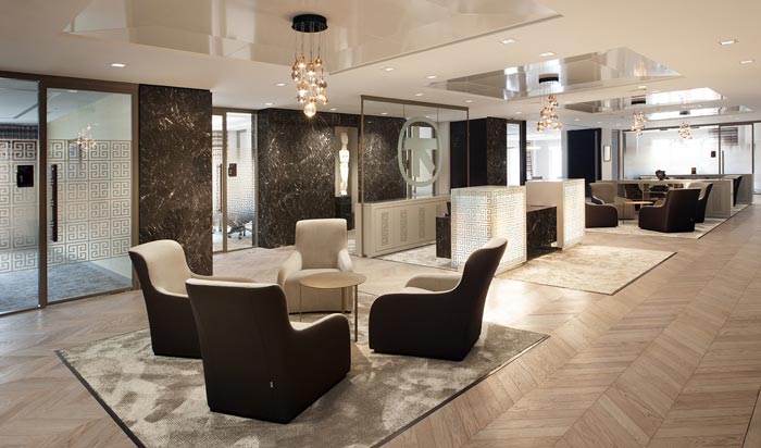 光線對于展示空間來說非常重要, 可以通過合理利用自然光或燈光照明來實現(xiàn)不同的效果。例如,在展廳入口處設(shè)置明亮的燈箱,吸引顧客進(jìn)入;而在展柜周圍使用柔和的燈光,突出展示品的細(xì)節(jié)和美感。